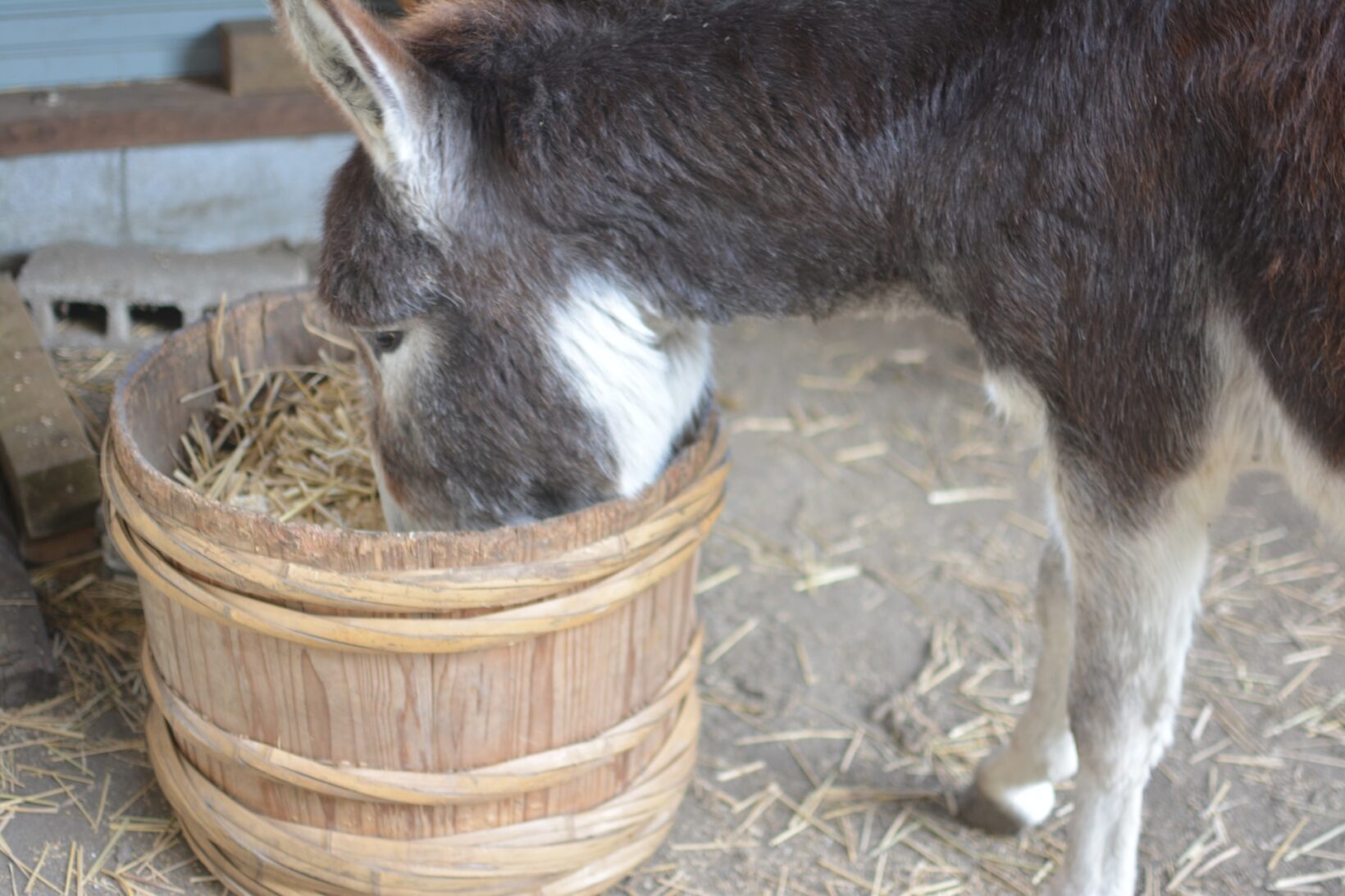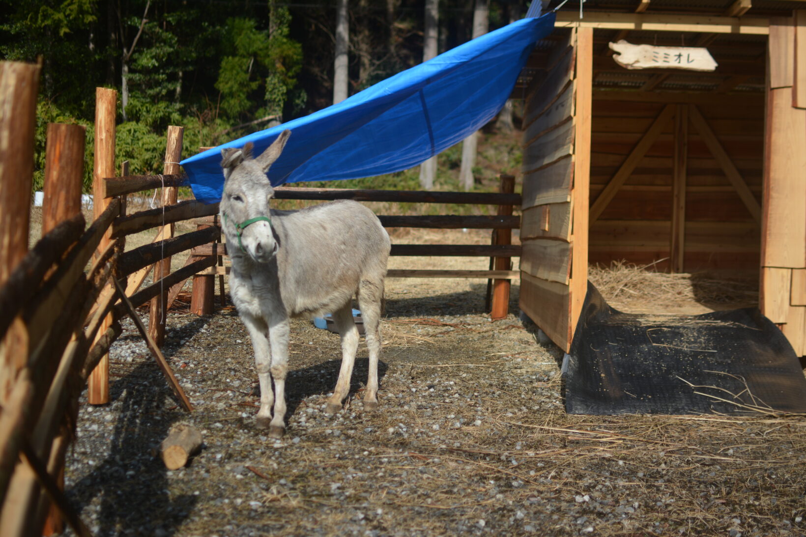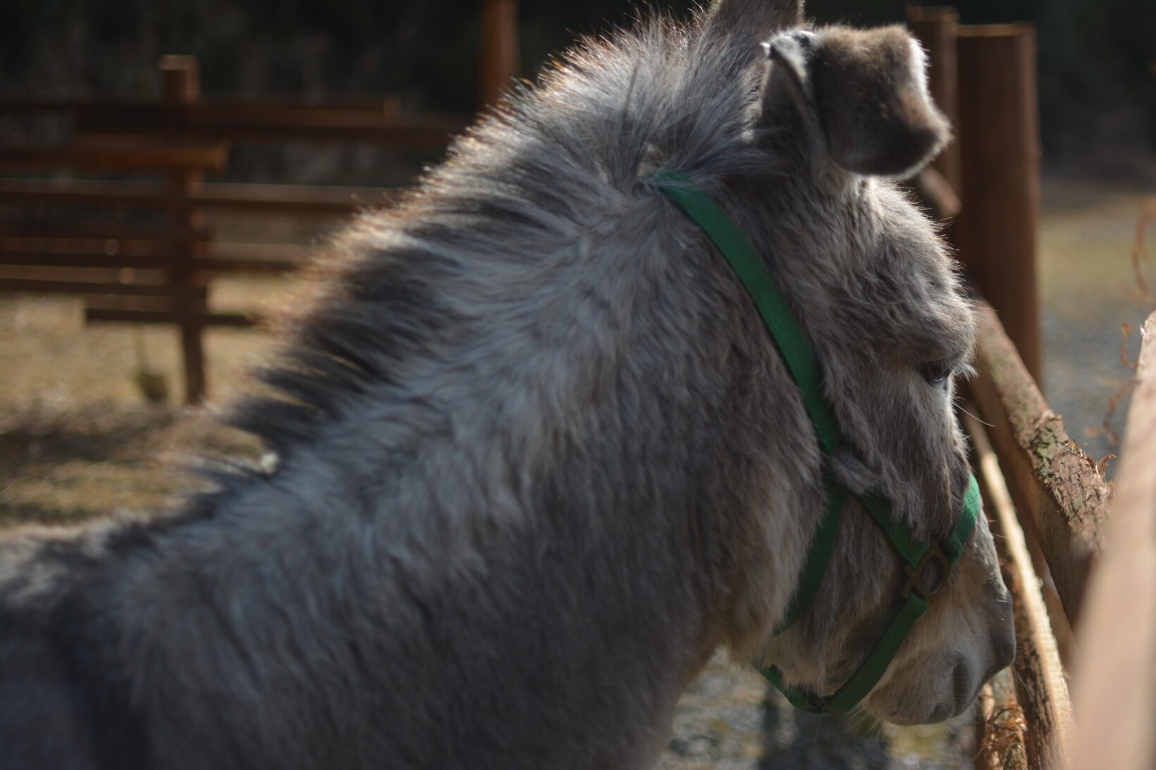 色川にやってきたのは2022年。やんちゃで好奇心旺盛、鼻で鍵を開けたり、棒をくぐったりするのが大得意。時折脱走しますが、追いかけなければ立ち止まることも。大きな声で鳴きますが、それはきっと寂しがりやだからです。立派な体格で、こげ茶色と灰色の間くらいの毛色と白色の2色の色合いがロバらしい。今後は荷物の運搬などにも活躍してくれる予定です。