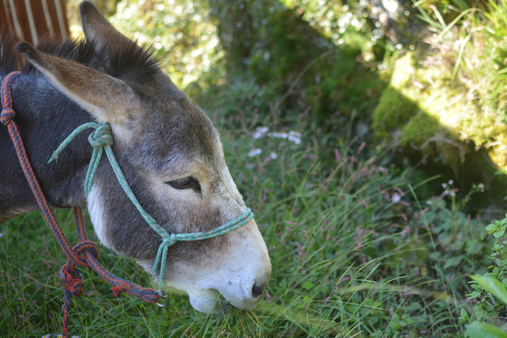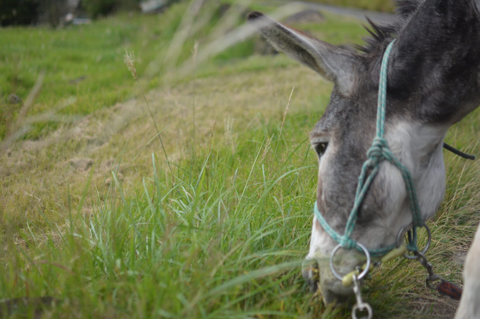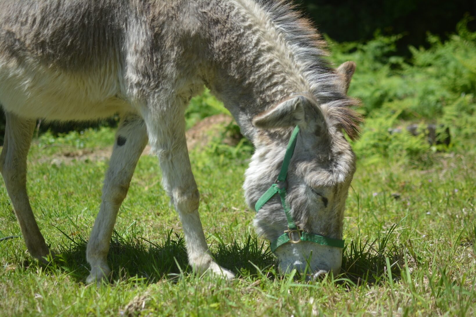 休耕地に生える厄介な草を、プラスに変えてくれる存在があります。それが家畜です。とくに私たちが可能性を感じているのが「ロバ」です。身体が比較的丈夫で青草が主食。休耕地に生え、刈ることが大変な強靭な草、カヤを好んで食べ、傾斜地に強い強靭な脚も持っています。