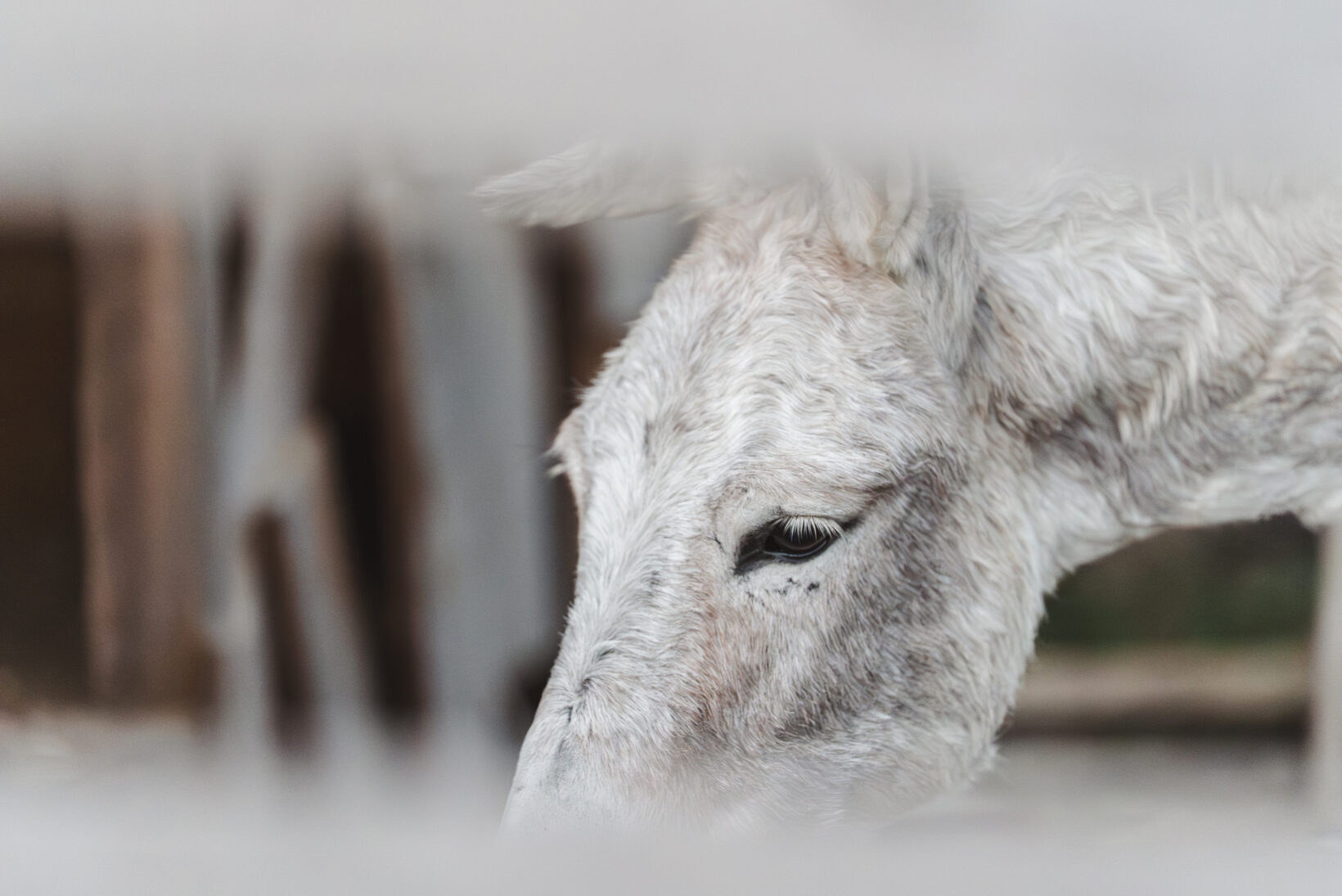 2025年3月にやってきたメスロバ、ミミオレ。名前の由来は、幼い頃にオス同士の争いに巻き込まれて負傷し、折れたようになってしまった右耳の様子から。穏やかでやさしく、人懐っこいが、タイミングの合わないオスロバには厳しい。白く長いまつげと、くせっ毛が可愛らしいロバ。色川に越してくる時には身籠っており、2025年8月、初産ながら無事にカフェラテ(♀)を出産し、娘を思いやる素敵なお母さんになりました。しかし、ひと月半でラテは病死。今もどこか寂しそうな表情を見せる日々が続きます。来春に、ガスパルとお見合いをして、夫婦になってくれることを願っています。