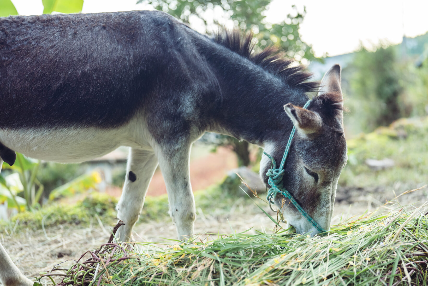 休耕地に生える厄介な草を、プラスに変えてくれる存在があります。それが家畜です。とくに私たちが可能性を感じているのが「ロバ」です。身体が比較的丈夫で青草が主食。休耕地に生え、刈ることが大変な強靭な草、カヤを好んで食べ、傾斜地に強い強靭な脚も持っています。